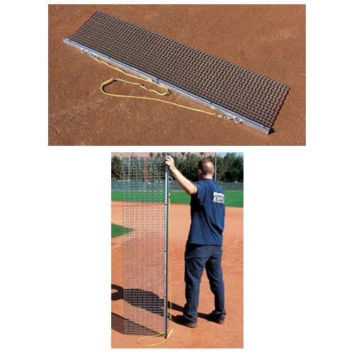 NOTE: The Rigid Drag Mat can not be rolled up for storage. Same as Standard Drag Mat except mesh has been rotated 90? to make mat rigid which helps maximize its effectiveness to smooth out uneven surfaces. Cannot be rolled up for storage. Includes heavy-duty angle iron across front of mat and a rope with handle for pulling. Weight 35 lbs