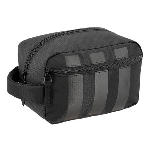 The Team Toiletry Kit's main zippered compartment opens wide to store everything you need for a night away or a week on the road. Extra outside zippered pocket for storage.