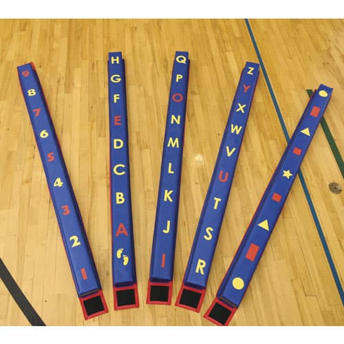 Alpha Balance Beams - Set of 3 These lightweight beams not only offer a fun, balancing challenge, but also provide educational opportunities pertaining to the alphabet, numbers and shapes. Beams are constructed using 3" foam covered with 18 oz. vinyl with fasteners on the ends to attach beams. Each beam measures 4"H x 3"W x 72"L.