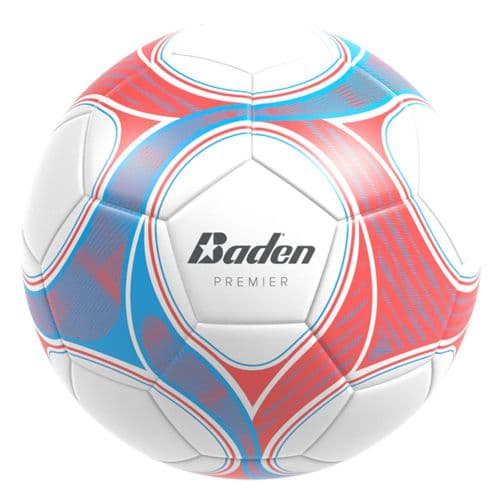 Baden Premier Soccer Ball Size 5 The Team Soccer Ball has a softer TPU cover for added comfort and great playability. The butyl bladder creates better air retention. It is also machine stitched and precision wound for maximum durability.