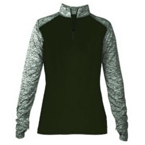 Players can help their team emerge victorious or push themselves toward new personal bests in this Badger Women's Sport Blend 1/4-Zip Pullover. Athletes will stay comfy as they log miles on chilly mornings or warm up before nighttime matchups, since this pullover is constructed from polyester to hold up to intense play throughout the entire season. With sport-paneled shoulders, this pullover delivers a wide range of motion to give sports stars control of each spike over the net or home-run swing.