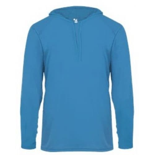 Athletes of all skill sets can compete at their highest level when they head to practice or games in this Badger B-Core Adults' Long-Sleeve Hooded T-Shirt. Players will be able to overcome the opposition, even in chilly conditions, since the attached self-fabric hood has a drawstring to create a tight, effective barrier against the elements. Constructed with moisture-management, antimicrobial fabric, this T-shirt wicks away sweat while minimizing odors, so wearers can focus on the challenges that lie ahead.