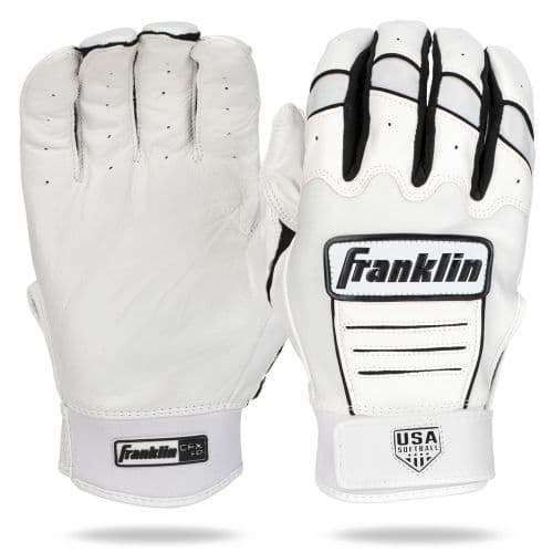 CFX FP USA SOFTBALL ADULT BAT GLOVE Franklin Sports is bringing its time-honored classic batting gloves to the world of fastpitch and slowpitch softball and changing the game for good with the all-new CFX FP - USA batting gloves. These are the first batting gloves from Franklin Sports to be specifically designed and built to fit the contours of the female hand so women and girls can enjoy increased comfort and performance at the plate. Constructed with the same premium quality leather as our CFX Pro model, the CFX FP is designed to bring the same level of performance exhibited by our MLB pros to softball diamonds across the country. As the official batting glove of USA Softball, the CFX FP is made to play at the highest level with unmatched durability to last season after season. Bring your softball game to the next level today with the glove built for you. Change the game and grab your pair of CFX FP batting gloves today!