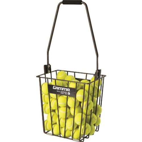 Gamma Ball Hopper Pro® 90 The Ball Hopper® Pro™ 90 features a steel frame with a reinforced, welded construction and a diamond clad weather resistant powder coating that makes it a high quality, durable ball pick up. Its well-designed lid prevents ball spilling and this hopper also comes with a convenient padded handle that adjusts from 28″ to 31″. These handles in combination with the floating wire and lightweight design makes the Pro® 90 extremely easy to pick up, flip and maneuver, making it the perfect product for easy and efficient tennis ball feeding.