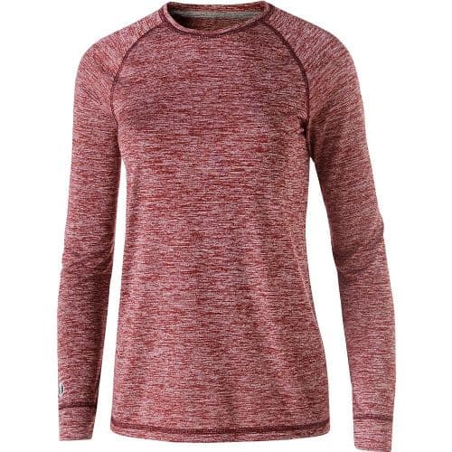 Athletes will be able to keep up with the competition when they wear this Holloway® Electrify 2.0 Women's Long-Sleeve Classic Fit Crew Neck T-Shirt. Players of all sports can spike balls over the net, swing for the fences or log the miles on the treadmill in this shirt, which features polyester knit construction with high mechanical stretch and raglan sleeves to deliver a wide range of motion. Wearers are sure to love the athletic appearance afforded by the bold, two-color pattern.