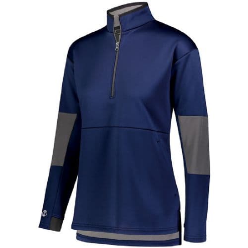 Experience the ultimate in softness and stretch with the Ladies Sof-Stretch Pullover by Holloway. Our Storm Dfend Technology features a durable water-resistant finish to keep you dry, while its knit softshell breathes to keep you comfortable. This polyester half-zip pullover features Sof-Stretch knit with DWR finish bonded to microfleece for warmth. The contrast color sleeve inserts add additional style to this versatile pullover.