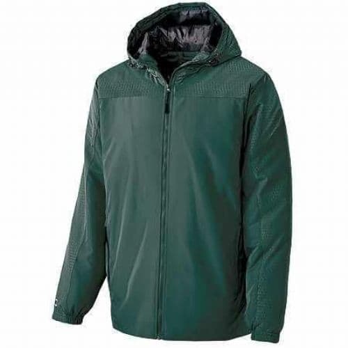 The Holloway Bionic Hooded Jacket is designed for teams needing reliable protection in various weather conditions. Made from lightweight, wind and water-resistant Micron polyester, this jacket features embossed Micron blocking at the hood, shoulders, and top sleeves with a Screenmesh pattern for added durability. The quilted polyester taffeta lining provides warmth, while the adjustable quilted hood, equipped with eyelets and concealed cord locks, ensures a secure fit. Additional features include dual front zippered pockets, an inside zippered pocket, half-elastic cuffs, and an open bottom with a dropped tail for enhanced coverage. Available in multiple color options, the Bionic Hooded Jacket is perfect for maintaining a cohesive team look while staying protected from the elements.