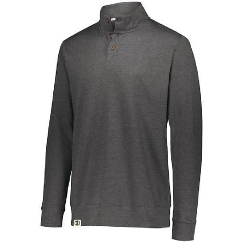Holloway Sophomore Pullover 7.8 ounce, 50% polyester/50% cotton french terry knit with vintage heathered look for worn-in feel. Exterior woven logo loop label. Three-button placket with vintage brass colored buttons. Set-in sleeves.