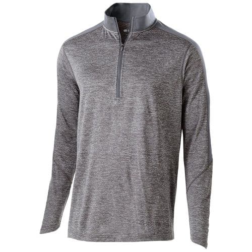 Holloway Youth Electrify 1/2 Zip Pullover Snowy Heather fabric is a Polyester knit with high mechanical stretch. Bold, two-color heather pattern achieved in the dye process, allowing for risk-free decoration. 1/2-Zip neckline. Angled sleeve hem. Modern fit.