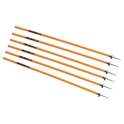Kwik Goal’s Coaching Sticks are designed to help improve a player’s foot speed, basic ball control skills, reaction time and overall agility. These sticks are secured into the ground using a natural surface only ground peg and can be arranged in a variety of ways dependent upon the specific training drills. The 16B10 Coaching Sticks include a set of 6 coaching sticks and are available in 5 colors including: yellow, red, blue, hi-vis orange and hi-vis green.