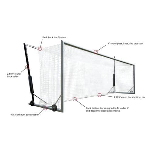 The Kwik Lock® Net System allows for quick, secure net attachment, while black back poles with integrated net tension winches maintain a clean, professional box-style net profile. A low-profile back bottom bar ensures easy placement under football uprights and in tighter field spaces.