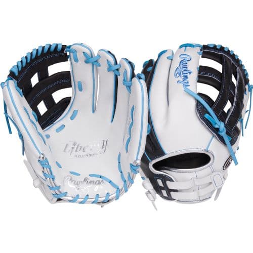 LIBERTY ADV 12.25" SB GLOVE WHI/BLK LHT The Rawlings Liberty Advanced 12.25-inch fastpitch glove features quality, full-grain leather for enhanced durability. This results in the glove being made for a quick, easy break-in. The Pro-H web pattern on this Liberty Advanced glove allows for a deep pocket, which allows for quick transitions and a tight squeeze. The pattern and web of the glove make for a good combination to be able to eat up any ground balls headed your way. To increase comfort, the Poron XRD padding in the glove helps reduce palm stings when dealing with hard-hit balls. Additionally, the Liberty Advanced series features pull-strap closures to create a custom fit along your wrist, which provides you with optimal comfort throughout the entire game. This model sports a white and black speedshell while highlighting the Columbia blue accents of the glove. Transform your game with the Rawlings Liberty Advanced 12.15-inch fastpitch glove today!