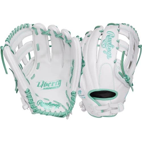 LIBERTY ADV 13" SOFTBALL GLOVE WHITE LHT The Rawlings Liberty Advanced 13-inch fastpitch glove features quality, full-grain leather for enhanced durability. This results in the glove being made for a quick, easy break-in. The Pro-H web pattern on this Liberty Advanced glove allows for a deep pocket, which allows for quick transitions and a tight squeeze. The pattern and web of the glove make for a good combination to be able to add to your highlight reel! To increase comfort, the Poron XRD padding in the glove helps reduce palm stings when dealing with hard-hit balls. Additionally, the Liberty Advanced series features pull-strap closures to create a custom fit along your wrist, which provides you with optimal comfort throughout the entire game. This model sports a white shell that perfectly accents the mint green details around the glove. Transform your game with the Rawlings Liberty Advanced 13-inch fastpitch glove today!