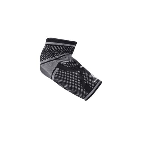 Mueller Omniforce Elbow Support The specialized manufacturing process of flat knit targets compression areas while still allowing the product to stretch and maintain a constant compression. The built in gel buttress supports the elbow. The lightweight elbow support helps to support the joint which can help improve performance and everyday activities. The unique design, extremely comfortable materials, and contoured fit make the sleeve comfortable to wear for extended play.
