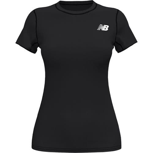 NBW Baselayer Short Sleeve Top Good for everything from light stretching to high-intensity workouts, the New Balance W Baselayer Short Sleeve Top is a staple in any athletic wardrobe. Made from lightweight polyknit materials with moisture-wicking NB DRY technology, it helps you stay cool and focused on your workout. This compression top has a fitted silhouette that is easy to layer and designed to let you move freely without getting caught up in extra fabric. 74% polyester, 26% spandex.