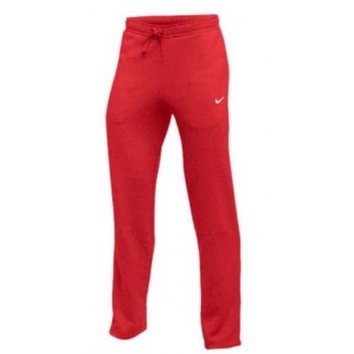 Nike Club Fleece Pant Brushback fleece open hem pant wth external drawcord. Back welt pocket. Side seam pockets. New plush loopback fleece, updated saddle stitching. Elasticized waistband with drawcord for comfortable fit. Embroidered logo at left thigh. Relaxed leg that is full length.