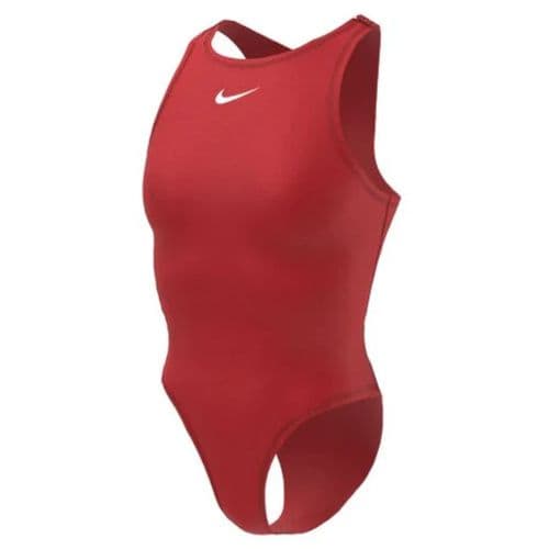 NIKE WATER POLO ONE PIECE Match with your team's color on your next event with the Nike High Neck Water Polo One Piece. It's double layer fabrication provides excellent body compression and it's Back Inset "anti-grab" feature prevents it from being pulled during gameplay. Get a full range of motion with its high-leg cut and cheeky bottom coverage.
