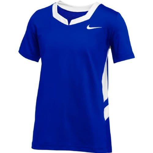 Nike Women's Untouchable Short Sleeve Jersey Dri-FIT technology helps you stay dry, comfortable and focused. Short-sleeve design for optimal coverage. Color contrast at neck and under arms gives your team a stand-out look. Modified V-neck helps you move freely and gives a classic game-time look.