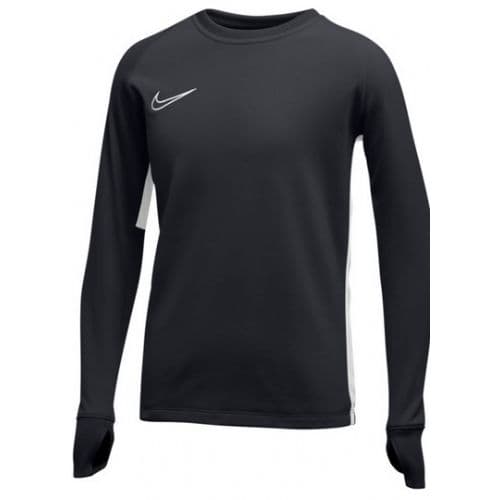 Nike Youth Academy19 Crew Top Dri-FIT technology helps you stay dry, comfortable and focused. Brushed fabric provides a warm, comfortable feel. Mesh side stripes add breathability. Thumb loops help keep your hands covered. Ribbed collar and cuffs help keep warmth in. Outline Swoosh design trademark is embroidered. 100% Polyester.