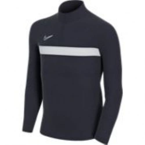 Nike Youth Dry Academy21 Dry Top Elevate your everyday training in the Nike Dri-FIT Academy Drill Top. Smooth, sweat-wicking fabric is lined with mesh to help you stay dry during practice. It even has hidden thumbholes to hold your sleeves in place. This product is made with 100% recycled polyester fibers. Dri-FIT technology helps keep you dry and comfortable. Invisible Thumb Loops help hold the sleeves in place as you move.Mesh on the inside and chest stripe adds breathability. 100% POLYESTER.