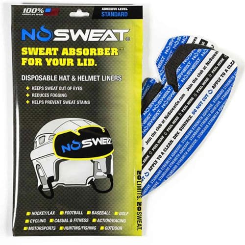 NoSweat has created a patented disposable performance liner that simply peels and sticks into any hat or helmet. Their liner absorbs sweat, prevents sweat from damaging hats with salt lines/sweat stains, and stops sweat from running into your eyes.
