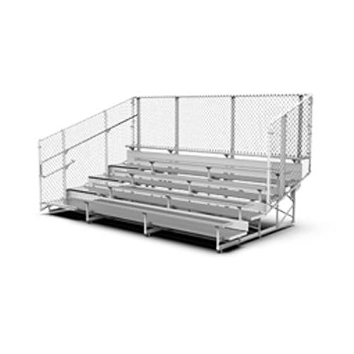 - Bleachers come complete with single seat planks, double foot planks on all rows, riser closures on rows 4 and above and have a vertical picket guardrail system
