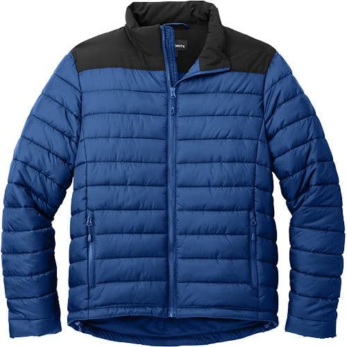 With horizontal baffles, a slight sheen and insulation that simulates down feathers, this is the newest puffy on the horizon. A water-resistant finish helps keep light rain out.