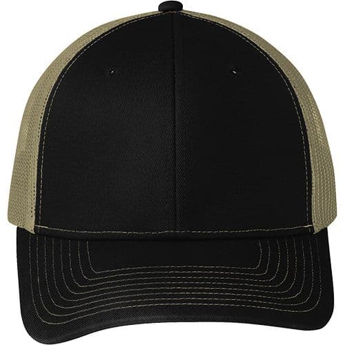 • Fabric: 100% cotton twill front panels and bill (Solids); 65% Polyester, 35% Cotton Twill front panels and bill (Heathers); 100% polyester mesh mid and back panels