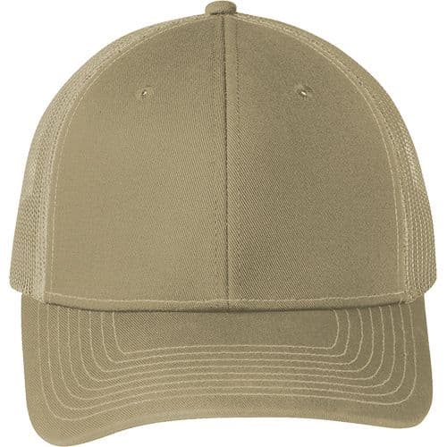 • Fabric: 100% cotton twill front panels and bill (Solids); 65% Polyester, 35% Cotton Twill front panels and bill (Heathers); 100% polyester mesh mid and back panels