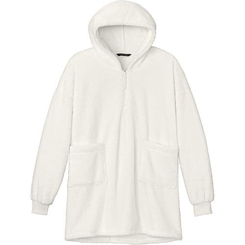 This two-sided brushed fleece poncho is simply fluffy and fun. Perfect for lounging, it offers a warm retreat any time of year.