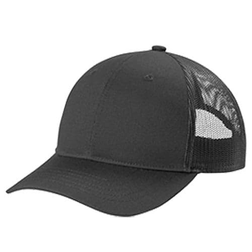 - Fabric 100% cotton twill front panels and bill (Solids), 65/35 polyester/cotton twill front panels and bill (Heather Grey).