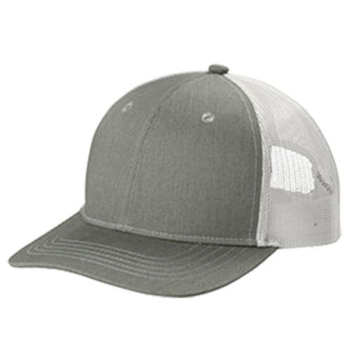 • Fabric 100% cotton twill front panels and bill (Solids), 65/35 polyester/cotton twill front panels and bill (Heather Grey).