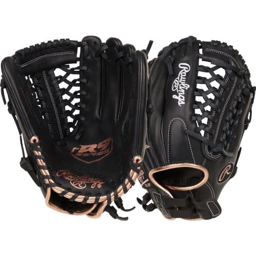 R9 12" SOFTBALL GLOVE - BLACK RHT The Rawlings R9 Fastpitch Series offers travel ball players unbeatable value for its quality, full-grain leather gloves. This 12-inch outfield glove features an improved fit with full-strap closures, helping you squeeze onto every ball hit into the gap. Additionally, the R9 series sports a quick and easy break-in to help with a game-ready feel at your convenience. For added impact protection, this glove is crafted with leather-cushioned palm padding, which helps reduce the chances of pesky stings. This utility glove presents a Modified Trap-Eze Web, ideal for curating a deep pocket to hold on to every ball . The black color on this glove highlights the beautiful rose gold accents, making it an irresistible glove to rep on the field. This Rawlings R9 Fastpitch Outfield Glove is the perfect glove for select and high school players looking to elevate their game without the premium price tag. Get yours today!