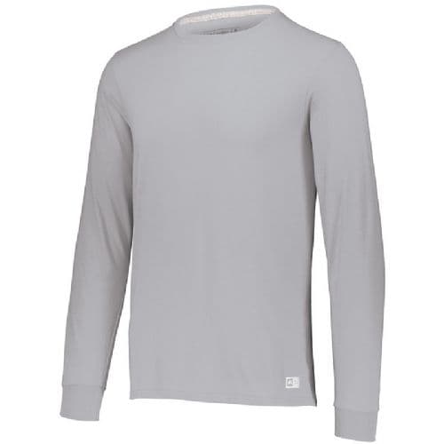 Russell Athletic Essential Long Sleeve Tee The Russell Athletic® Essential Long Sleeve Tee delivers the comfort, style, and performance to fit your active lifestyle. This long sleeve crewneck T-shirt will keep you dry as you sweat, making it easy to transition from work to workout. 4.75 ounce. 60% cotton/40% polyester. Oxford: Oxford 47% cotton & 53% polyester. Dri-Power® Moisture Wicking Technology. Odor protection. Pad print label. RUSSELL ATHLETIC heat sealed label on bottom left front. Crew neck. UPF 30+, provides protection from the sun. Set-in sleeves.