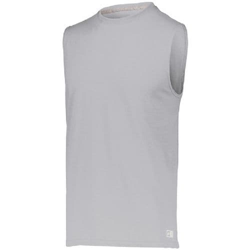 Russell Athletic Men's Essential Muscle Tee The Russell Athletic® Essential Muscle Tee offers the comfort of cotton combined with the benefits of performance. This lightweight crewneck sleeveless T-shirt delivers the comfort, style, and performance to fit your active lifestyle. 4.75 ounce. 60% cotton/40% polyester. Oxford: Oxford 47% cotton & 53% polyester. Dri-Power® Moisture Wicking Technology. Odor protection. Pad print label. RUSSELL ATHLETIC heat sealed label on bottom left front. Crew neck. UPF 30+, provides protection from the sun.