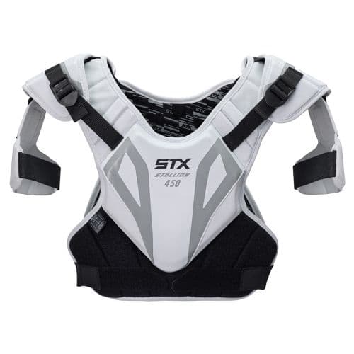 STX Stallion 450 Shoulder Pads Lightweight & Low-Profile—One of the lightest and slimmest chest protection systems in the game, this shoulder pad was designed to meet the NOCSAE® ND200-22 Standard without adding excess bulk or material.