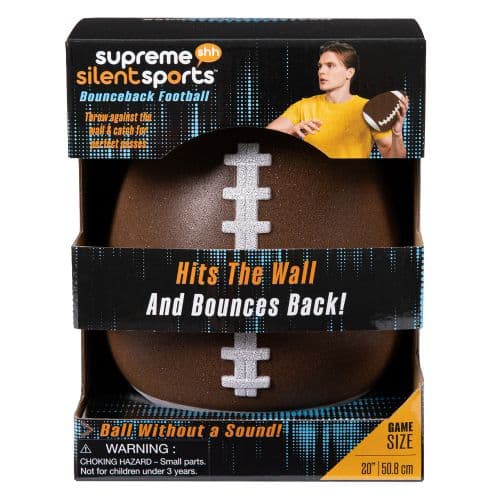 Supreme Silent Sports Bounceback Football The Supreme Silent Sports Bounceback Football delivers quiet, indoor-friendly play with its premium foam design that dampens sound. Perfect for solo practice, it bounces back when thrown against hard surfaces, helping improve passing accuracy, reaction time, and hand-eye coordination.