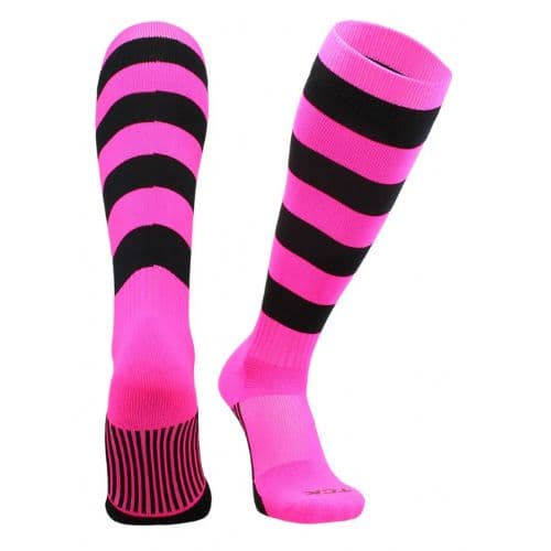 - UPDATED FOR PERFORMANCE: These hoop striped rugby socks and football socks were updated in Spring of 2024 with moisture wicking yarns and new performance enhancing features like arch compression and a padded heel and toe.