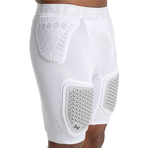 UA Game Day Armour Pro 5-Pad Girdle w/McDavid Low-Profile HEX Viz + Extra Protection Flexible Thigh Cap, HEX Viz 5mm on Hips & Tailbone, Thinner moves with your body to provide Exceptional protection. HeatGear wicks sweat and dries fast, Stretch-mesh panels for ventilation, and 4-way stretch fabrics.