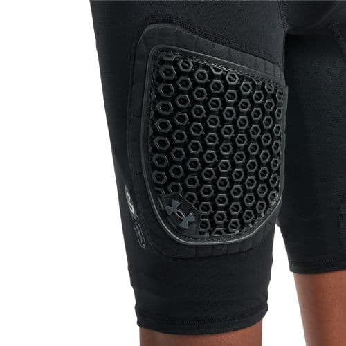 UA Game Day Armour Pro 5-Pad Girdle - Youth, Solid Features patented McDavid HEX® technology, with Hard Cap Thigh Plates over HEX® Padding for added impact protection in vulnerable thigh areas, along with HEX® Hip and Tailbone Pads. HeatGear wicks sweat and dries fast, Stretch-mesh panels for ventilation, 4-way stretch fabrics, lightweight HEX® is anatomically contoured, and allows your body to move freely while protection stays in place.