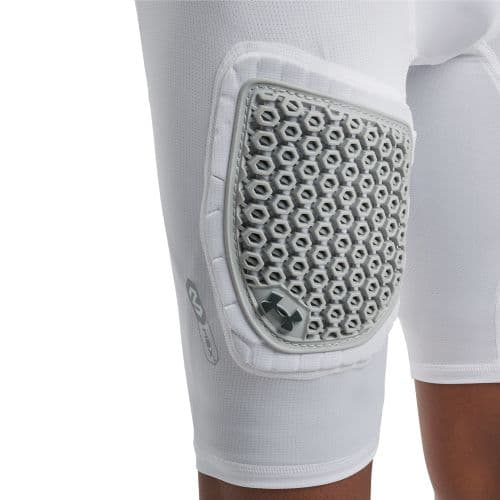 UA Game Day Armour Pro 5-Pad Girdle w/McDavid Low-Profile HEX Viz + Extra Protection Flexible Thigh Cap, HEX Viz 5mm on Hips & Tailbone, Thinner moves with your body to provide Exceptional protection. HeatGear wicks sweat and dries fast, Stretch-mesh panels for ventilation, and 4-way stretch fabrics.