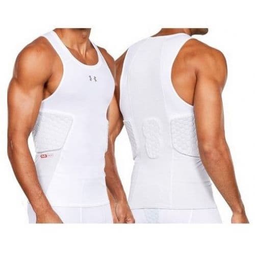 UA Gameday Armour 3-Pad Basketball Tank Featuring patented McDavid HEX technology, the leading protective padding in the game. HEX is lightweight and anatomically contoured, moving freely with your body to provide exceptional protection. The preferred choice for elite athletes around the world. Moisture Transport System wicks sweat and dries fast. HeatGear with all the benefits of UA Compression, comfortable enough to be worn all day. Stretch mesh panels deliver strategic ventilation. 4-Way stretch fabrication allows greater mobility in any direction. Rib and back pads included.