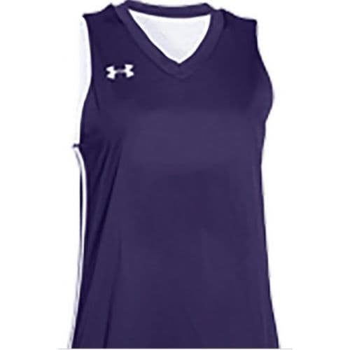 UA Women's Drop Step Jersey Solid body reversible tank and short with contrasting side insert. High Energy Dyed Poly-Colors; 100% textured mesh with moisture transport system-Whites. Shorts inseam: Women's 9", Youth 8". 2" Covered elastic waistband with flat lace drawcord.